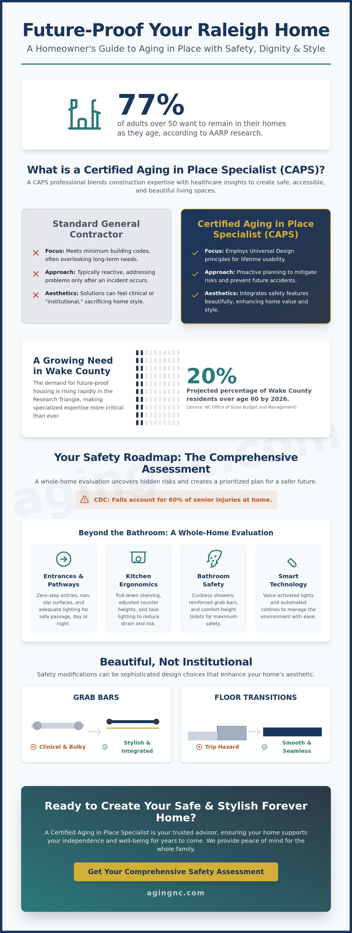 What if your home could become safer and more accessible without ever losing the sophisticated style that makes it yours? According to 2021 AARP research, 77% of adults over 50 want to remain in their current residence as they age. However, many Raleigh homeowners worry that preparing for the future means turning a cherished family home into a sterile, clinical environment. You shouldn't have to sacrifice your dignity or your home's aesthetic to stay safe.